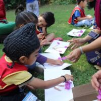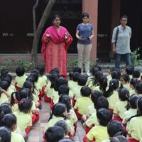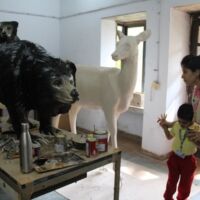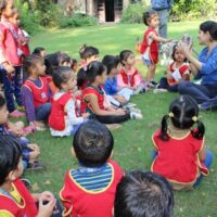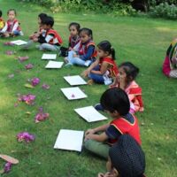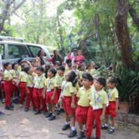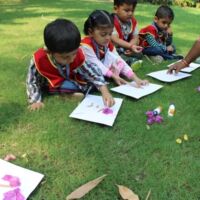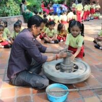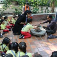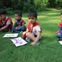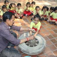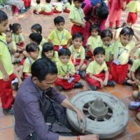 Toddlers of Bodakdev School visited CEE (Centre for Environment Education) recently. The vast sprawling campus is located in Bodakdev area. The staff of CEE welcomed them. The little ones from Playgroup (Early Child Care) were busy in the open finding ants and noticing their mud homes in the green grass. They also picked dried flowers and leaves and made beautiful collages. The young children of other sections got a chance to interact with the potter and create cute vases with clay. The special students of Sparkles visited the exhibition section where they saw exhibits of wild animals and domestic animals. The visit concluded with a tour of the beautiful campus where they saw a large variety of birds, insects and fishes. Such well thought visits help the young children to learn to appreciate and observe nature.