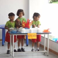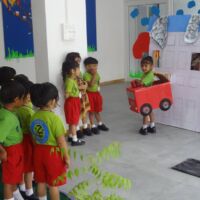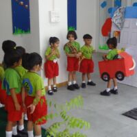 Nursery section performed a skit on fire safety. This skit helped the children learn about fire, what to do in case of a fire, whom to call in case of a fire. The message of the skit was clear not to play with fire and call the fire-fighters who will be there quickly to help stop the fire using water and other types of extinguishers.