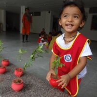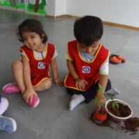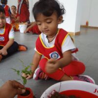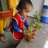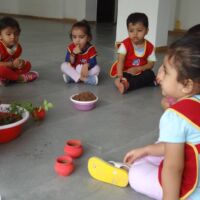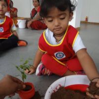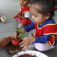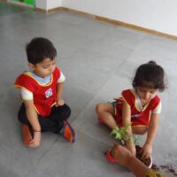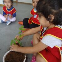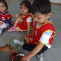 A plantation activity was held in the school. Children were provided with pots, soil, water and a sapling. Our little ones painted the pots in red colour in their painting sessions.