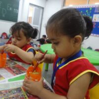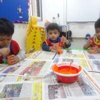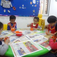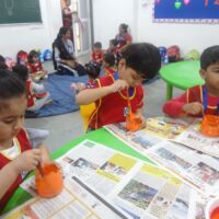 Our little ones gleamed with joy on seeing the nine planets hanging from the ceilings. Children jumped in excitement as they counted stars from the walls of their classrooms. A huge cut-out of an astronaut was placed in a corner. Our enthusiastic teachers shared new facts on the Universe and the Solar System with their little darlings. This activity would inspire them to learn more about the universe and would satiate their curiosity on the Universe.