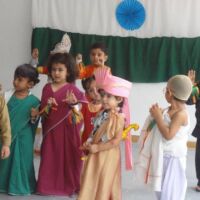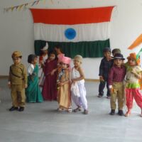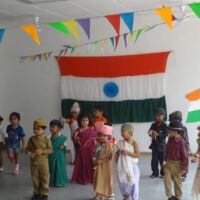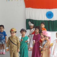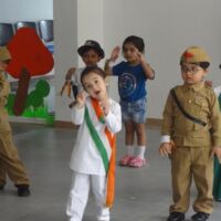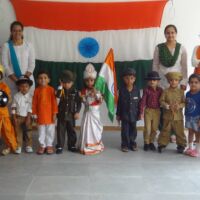 Pictures of the grand event reflect the efforts put in by the children, teachers and parents of the Bodakdev Preschool. Students of preprimary came dressed in attires of freedom fighters and performed on patriotic songs. Nursery students made small flags to pin to their shirts and also created collages of the Indian flag. They also had hand prints in tricolour. They even enacted the roles of national leaders. The soft boards were decorated with national symbols. The school was decorated with tri-coloured balloons, flags, ribbons and patriotic slogans.