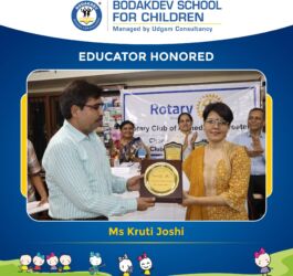 We are thrilled to announce that educator Ms Kruti Joshi of Bodakdev School was honored by the Rotary Club Ahmedabad Greater on September 6th, 2024. The event highlighted the commendable contributions of 5 distinguished educators from the city to the field of education. This recognition underscores their dedication and impact in the educational domain. Congratulations to Kruti, ma’am, on this noteworthy achievement.