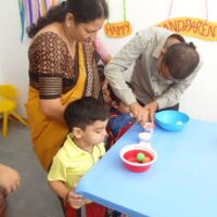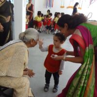 The guests of honour- Grandparents, were welcomed with the traditional way by applying tilak on their forehead. The special day was filled with dance and song performances by the kids. Children recited rhymes and danced on songs. After some fun-filled performances, grandparents and children played puzzles and games with their tiny tots. In the end, paper flowers made by the children were gifted to grandparents to take with themselves as memoirs.