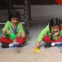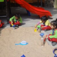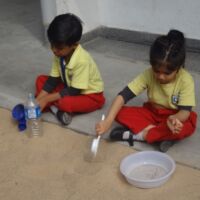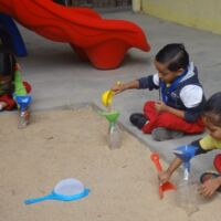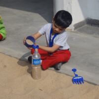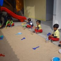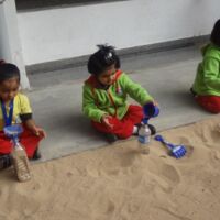 We believe that children learn best through exploration and experience and hence we provide opportunities for the little ones to participate in sensory play in the campus. During the sand play sessions, toddlers explored the properties of sand and could touch, dig, scoop and play with sand. Children loved the tactile experience of feeling and swirling sand through their fingers and toes. As the little ones filled their bottles with sand, they also could relate to basic mathematical terms of full and empty, heavy and light.
