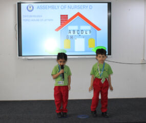 The nursery D toddlers recently held an assembly on the topic of House of Letters, where they spoke with fluency and confidence. Assemblies in schools play a significant role in helping students overcome stage fear and build their confidence to speak in front of an audience. Such events provide an excellent opportunity for students to showcase their skills and talents, leading to their overall development.