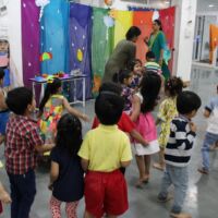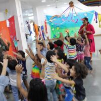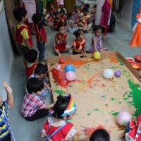 Children of Bodakdev School welcomed the rain gods in the city by celebrating VIBGYOR Splash Day in the school. They came dressed according to the theme; some of them carried colourful umbrellas to school while others were dressed as peacocks or clouds. With the perfect weather, this celebration was apt as the children got to know everything related to the rains and rainbow. Playgroup (Early Child Care) children sang ‘Row Row your boat’ and floated their paper boats in the splash pool. They also took part in balloon dabbing activity. Tiny tots of Nursery splashed different colours on the floor to observe the mixing of the colours.