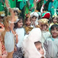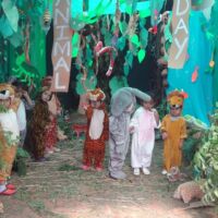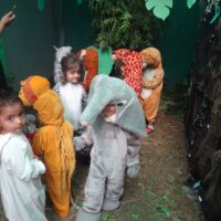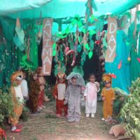 They used recycled green paper, cut-outs of animals and fresh leaves and branches to create a small jungle. A little water pond was also created in which children could spot fishes and duck. Children dressed as animals came to school and spoke a few lines in the jungle. They were taken for a walk in the forest where they spotted many animals which were hidden in the corners of the wilderness. Children enjoyed this activity as through this activity they got a deep insight into the habitat of animals.