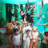 Jungles are always fascinating for the Pre-schoolers. On World Animal Day a beautiful forest was created by the teachers in the campus. They paid heed to every small detail of the things found in the jungle.
